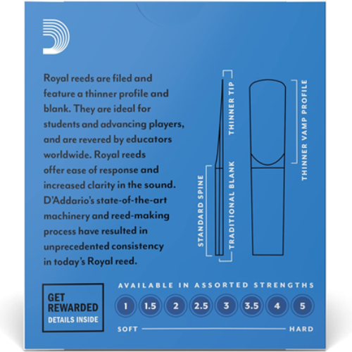 Esta caña, fabricada por la reconocida marca Rico, es conocida por su durabilidad y resistencia, lo que la convierte en una opción ideal para músicos de todos los niveles. Su material de madera proporciona un tono cálido y rico, mientras que su diseño Royal asegura una respuesta rápida y una fácil articulación.